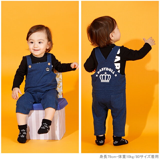 綿100% ロンT:一般的なTシャツよりやや厚め/ポンチ/左肩にスナップボタン付/プリント サロペット:ニットデニム/ワッペン/プリント/バックポケット×2/股下スナップボタン/サスペンダー部分ボタン付 靴下:滑り止め付 ジャンパースカート:ニットデニム/ワッペン/プリント/股下スナップボタン/ブルマ一体型/サスペンダー部分ボタン付 レッグウォーマー:上下リブ/裾フリル ▼セット内容 BOY:ロンT、サロペット、靴下 GIRL:ロンT、ジャンパースカート、レッグウォーマー ※写真のプリント位置と多少の誤差が生じる場合があります。